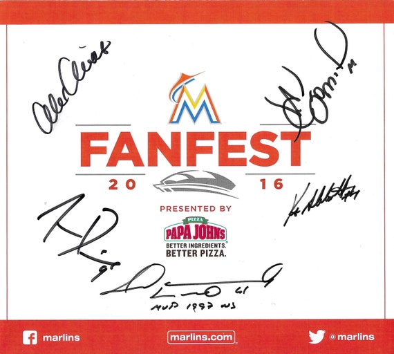 Florida Marlins Fanfest 2016, Signed 8 page 8.5×9.5 by 5 Players